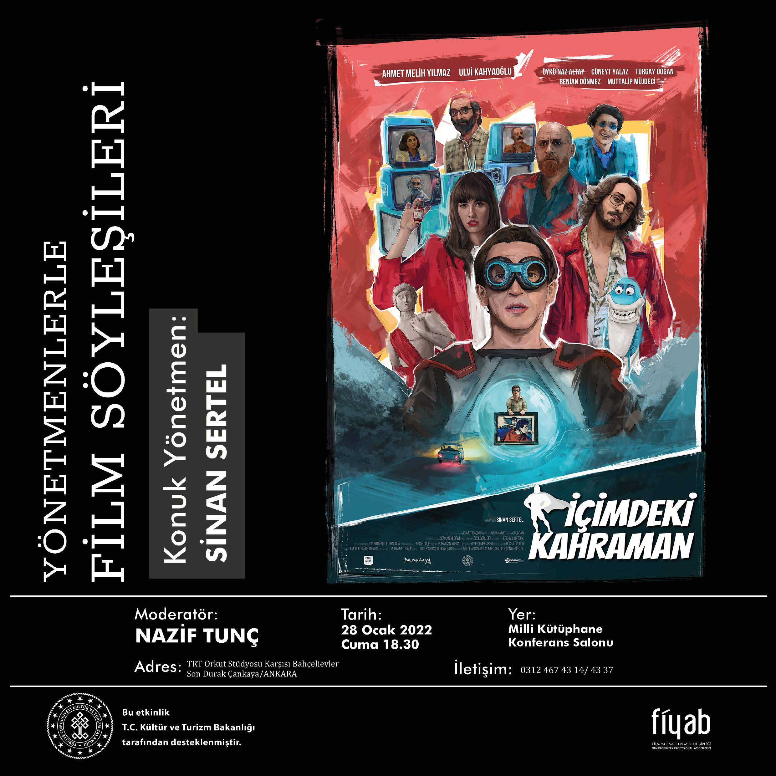 Yönetmenlerle Film Söyleşileri 2022 yılında da devam ediyor. Bu yıl etkinliğimizin ilk konuğu; Ulusal ve Uluslararası Film Festivallerinden "En İyi Yönetmen", "En İyi Müzik", En İyi Kurgu" ödülleri ile dönen "İçimdeki Kahraman" filmi ve yönetmeni Sinan SERTEL olacak.
